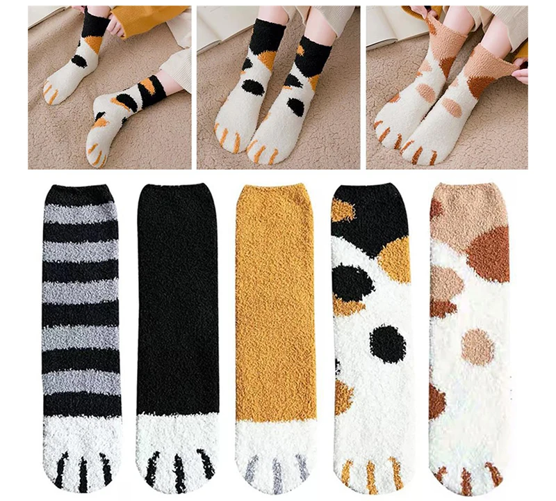 New Cotton Socks Winter Funny Print Cat Paw Warm Socks Kawaii Cute Casual Happy Fashion Designer Socks for Men Women